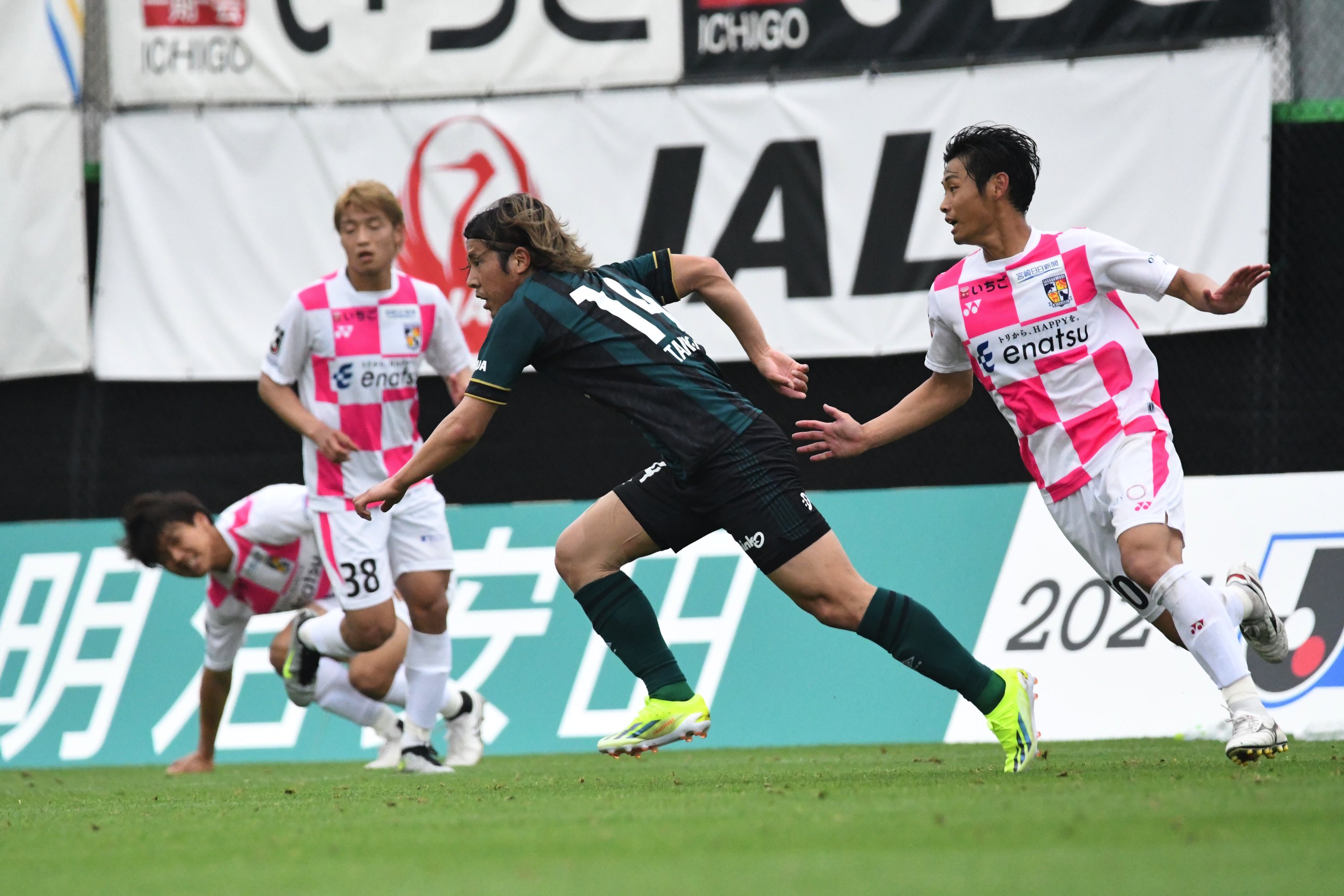 ホームで勝って天皇杯予選で勝って、ここでも勝ち点3を得ることを目指しました。昨シーズンも(アウェイの宮崎戦では)点を2つとって、一時逆転しましたけど、そこから追いつかれて引き分けに終わりました。昨シーズンも言わせてもらったかもしれないですけど、こぢんまりとしたスタジアムですけど雰囲気がすごくありますし、ホームのサポーターがすごく多い。僕らの選手からすれば、うまくプレーできた時間もありつつ、失点した後に会場の雰囲気が変わるといったことを選手たちも感じていたと思います。その後も難しい時間がありましたけど、それに選手はしっかりと耐えながら、交代選手も含めてゴールを目指してくれました。
