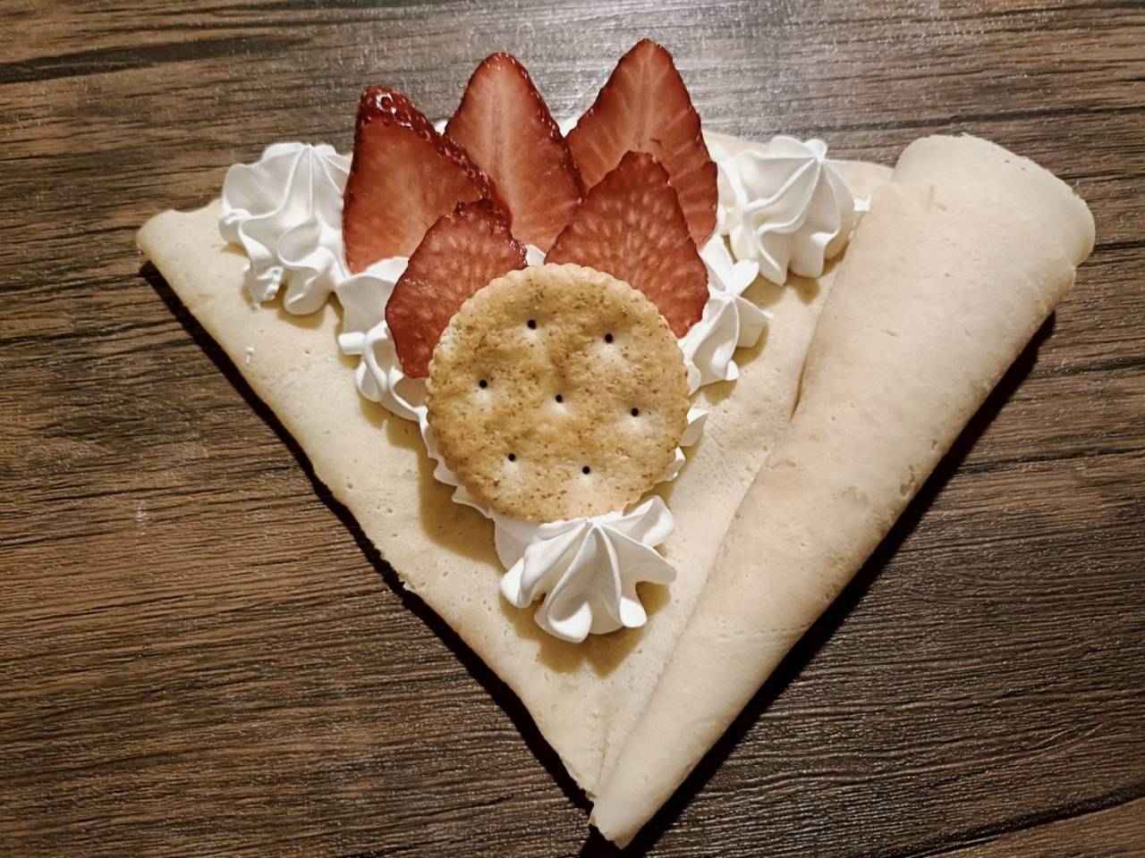 ホイップクリームにいちごとルヴァンクラッカーをトッピング。ザクザクとした食感は病みつきになります。