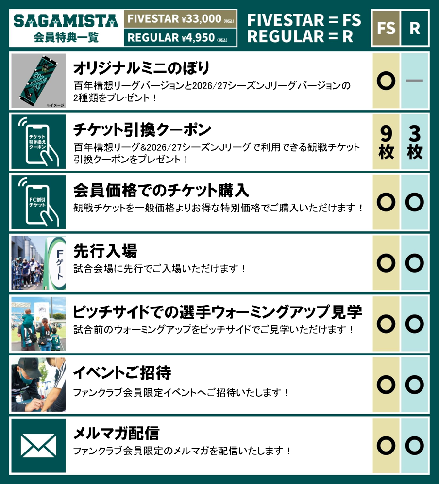 このたび、「明治安田J2・J3百年構想リーグ」ならびに「2026/27シーズン 明治安田Jリーグ」を対象とする、SC相模原公式ファンクラブ “SAGAMISTA”の販売概要が決定いたしましたので、お知らせいたします。